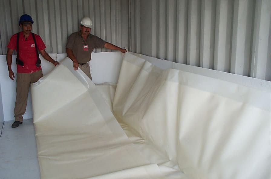 Thermal Container Liners & Covers is a fully woven reflective liner that is hung into a general-purpose ISO shipping container and allows for forklift loading, hand loading and slip sheet. Once loaded it is fully sealed protecting all six walls and providing a closed off temperature and humidity controlled environment for the goods within.